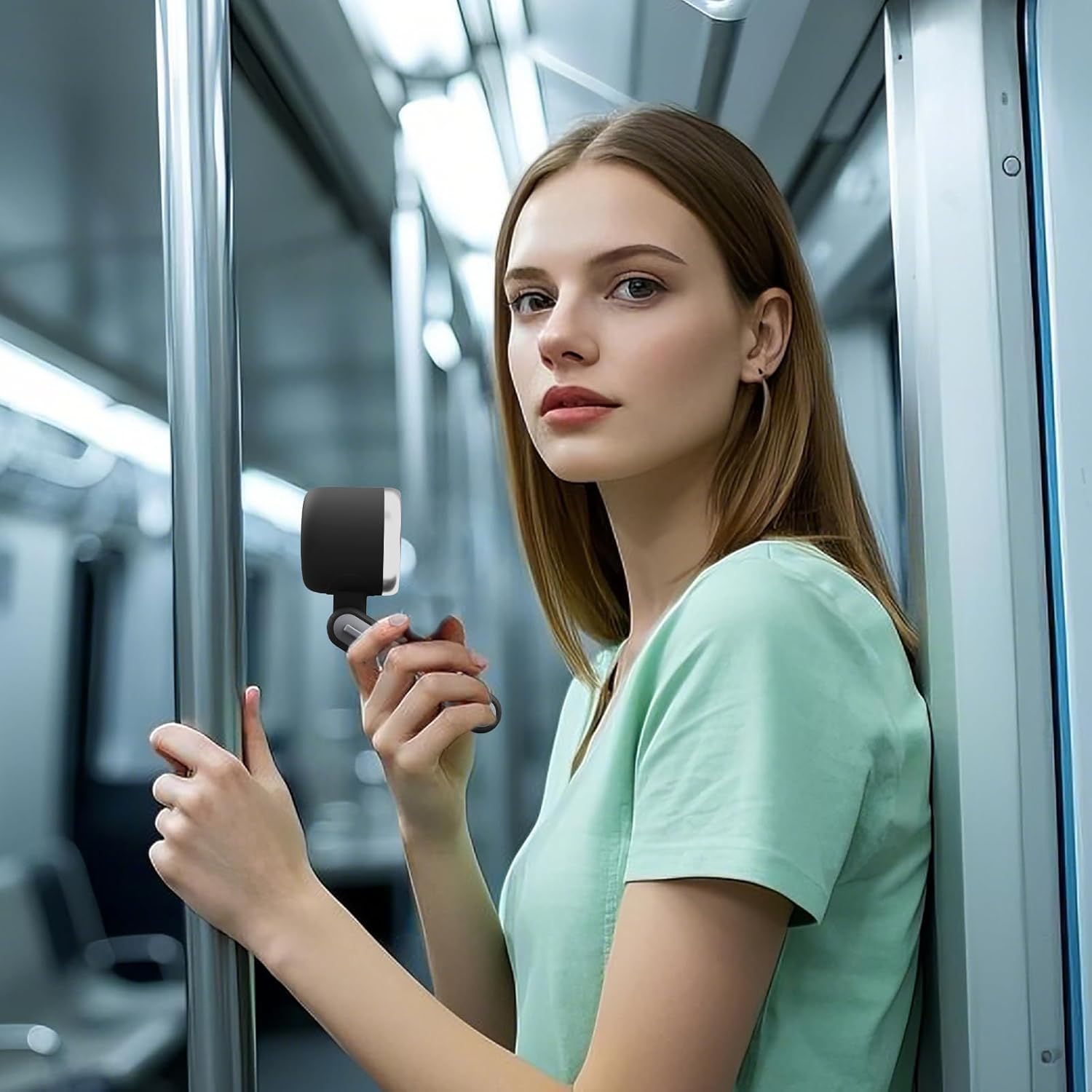 It’s ultra-light (only 180g) with a foldable 270° design, and includes an adjustable strap for hands-free carrying.