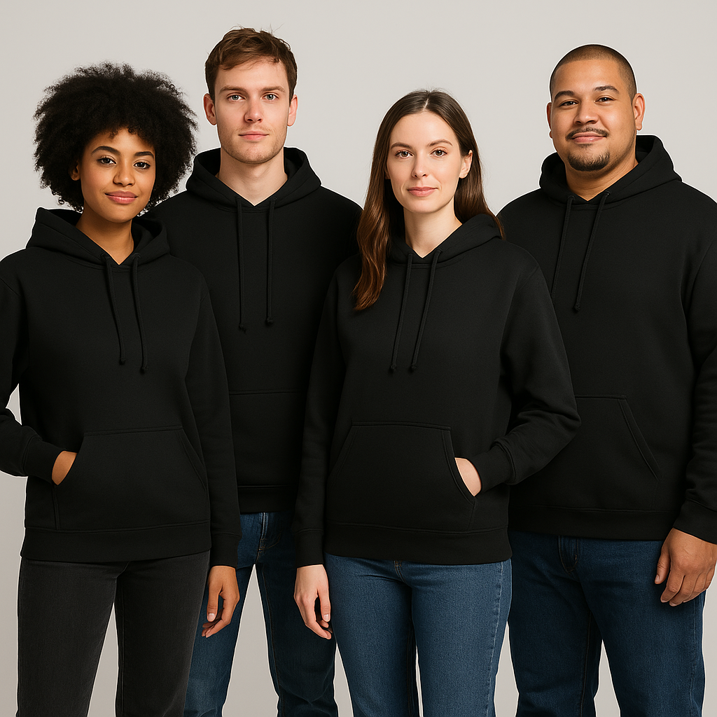 Our hoodies are crafted from a premium 50% cotton and 50% polyester blend — soft, warm, and breathable for all-day comfort.